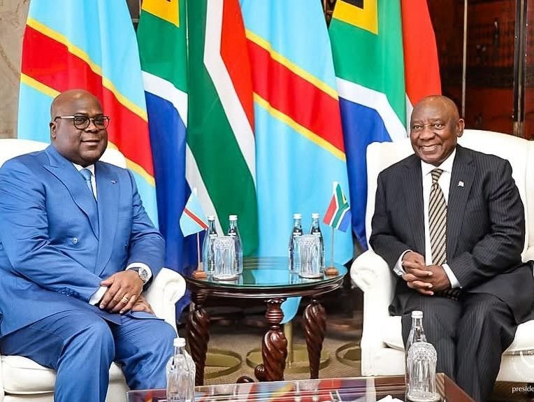 Le président de République Démocratique du Congo, Félix Tshisekedi Tshilombo et son homologue sud-africain Cyril Matamela…