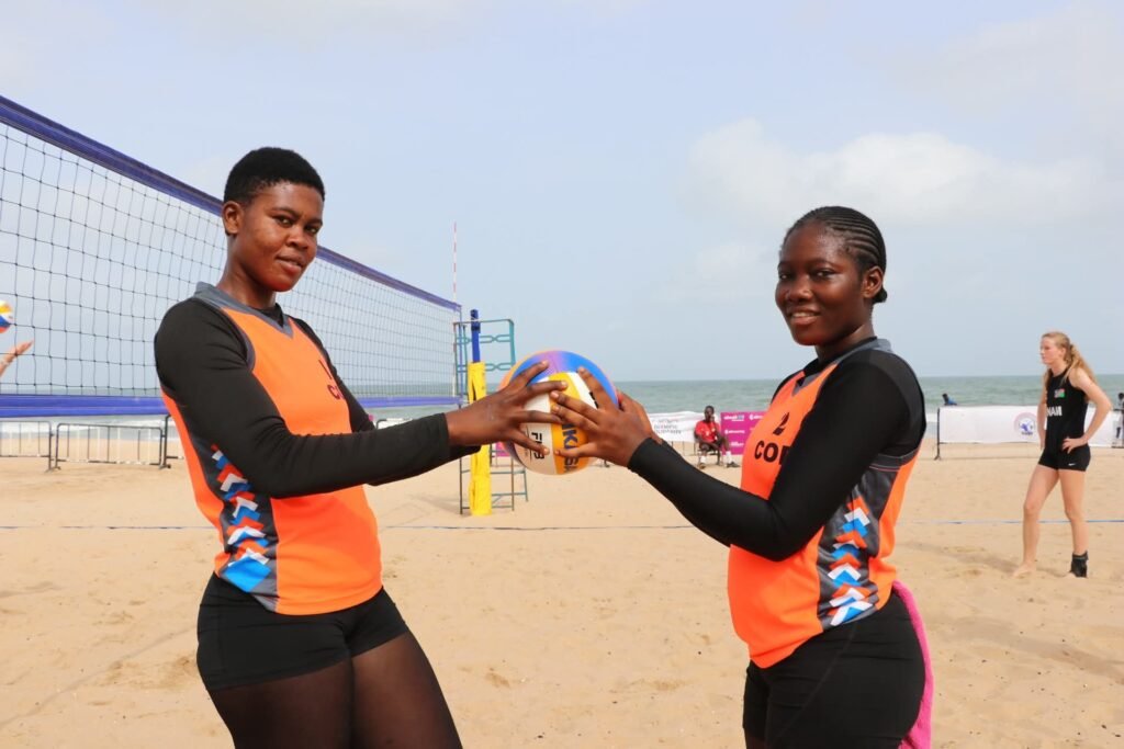 La paire féminine composée de Honorine Ekete (Canon de N’d’jili) et Kerene Matatanu (Vita Club) s’est imposée devant la Namibie par 2 sets à 0 (21-7, 21-5) en 23 minutes puis s’est inclinée devant la Gambie sur le score de 2 sets contre 1 (19-21, 21-12, 12-15) en 44 minutes.