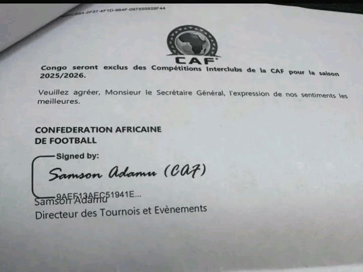 D’après la correspondance officielle de la CAF signée par Samson Adamu (CAF) à la FECOFA et, destinée Jean Marie Mbuyi Kalonji, Secrétaire Général de la FECOFA, la fédération congolaise n’a que jusqu’au mardi 9 septembre 2025 pour trouver un consensus et envoyé les 4 représentants sinon la RD Congo n’en aura aucun.