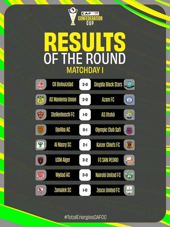 Et enfin, AS Otoho (République du Congo) de Fiston Buabua a courbé l’échine devant Stellenbosch FC (Afrique du Sud) par 1 but à 0.