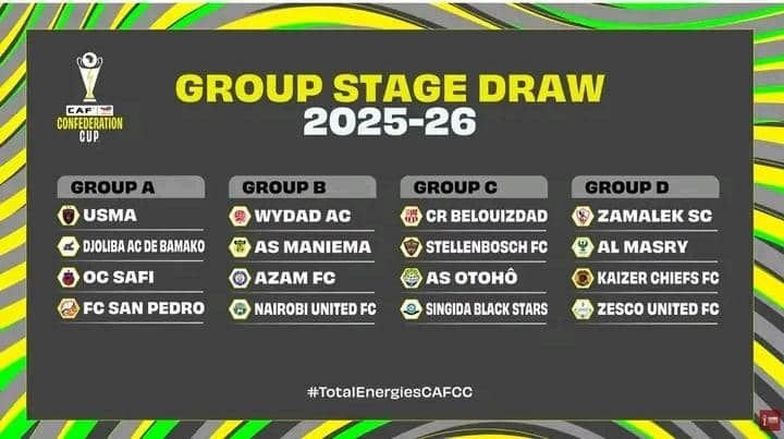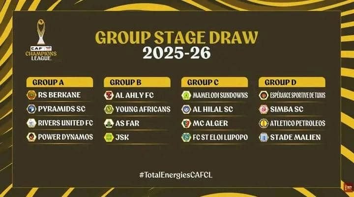 Et enfin, Simba SC (Tanzanie) d’Élie Mpanzu, finaliste de la Coupe de la CAF 24-25, est logé dans le groupe D aux côtés de l’Espérance Sportive de Tunis (Tunisie), Petro de Luanda (Angola) et Stade Malien (Mali).