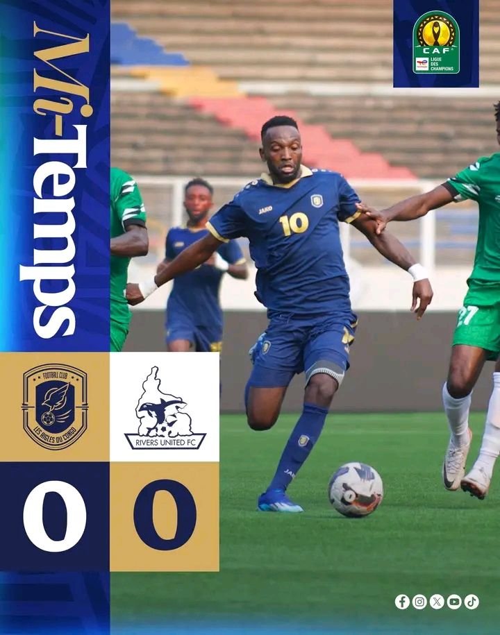 Pour sa première participation à une campagne Africaine, le FC Les Aigles du congo fait le match nul contre Rivers United du Nigeria sur le score de 0 but partout, samedi 20 septembre au stade des Martyrs de la Pentecôte pour le compte du premier tour de la Ligue des Champions de la CAF.